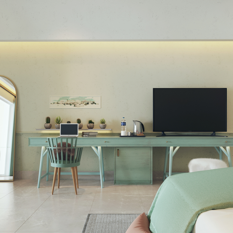 The Greek Style Family Rooms at Albaker Marina Hotel and Resort in Marsa Alam offer a charming and immersive experience inspired by the iconic architecture and culture of Greece. These spacious rooms feature pastel hues, Mediterranean inspired furnishings, and modern amenities. With panoramic views of the resort's gardens or the Red Sea, families can relax and unwind in style while creating